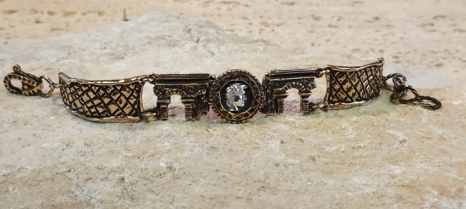 Bracciale Unisex "Acquedotto Romano" – Bronzo con Moneta in Argento, 16/20cm