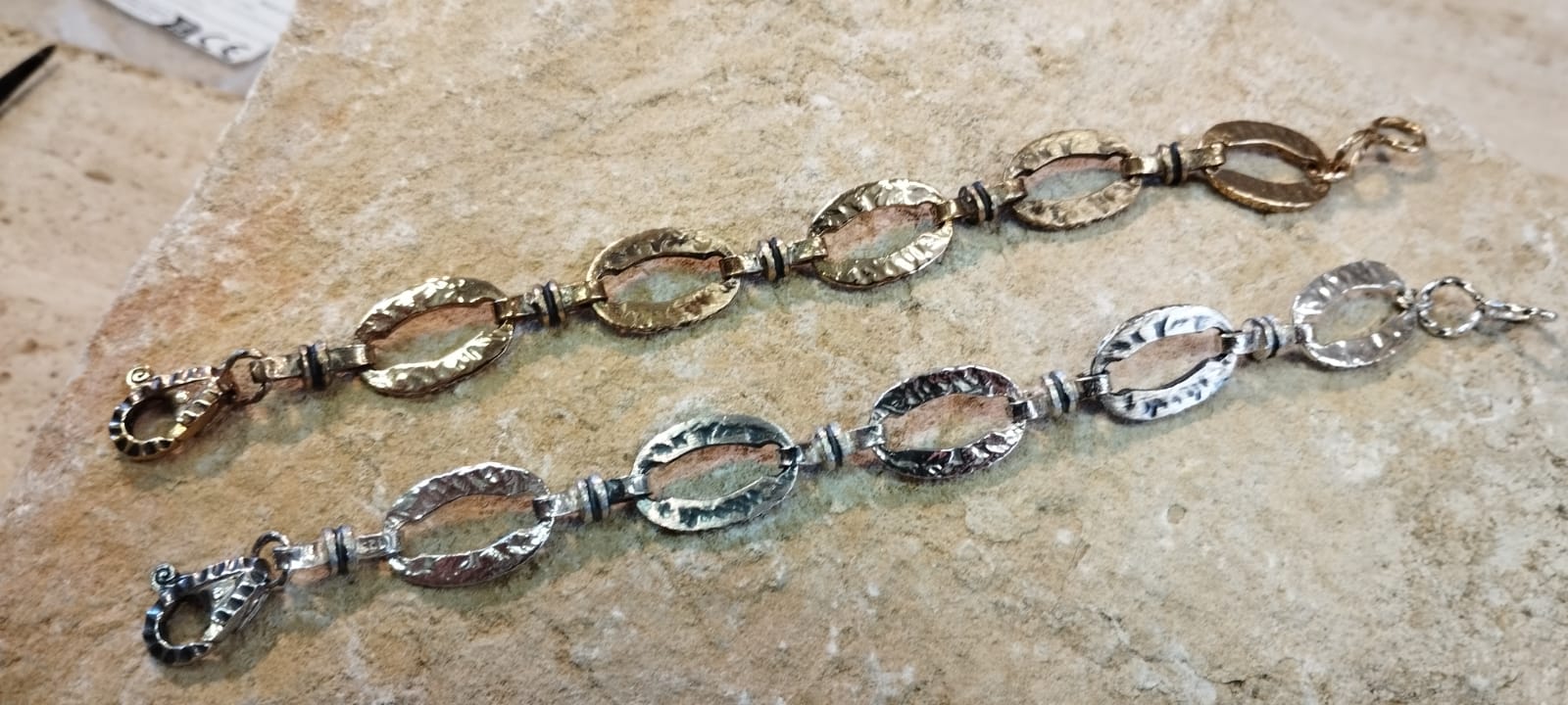 Un bracciale artigianale che fonde la lucentezza dell’argento con l’eleganza dei spinelli neri, per un accessorio dal carattere deciso e dal fascino senza tempo. La catena martellata in stile romano, arricchita da una texture ossidata, crea un connubio perfetto tra tradizione e modernità.
